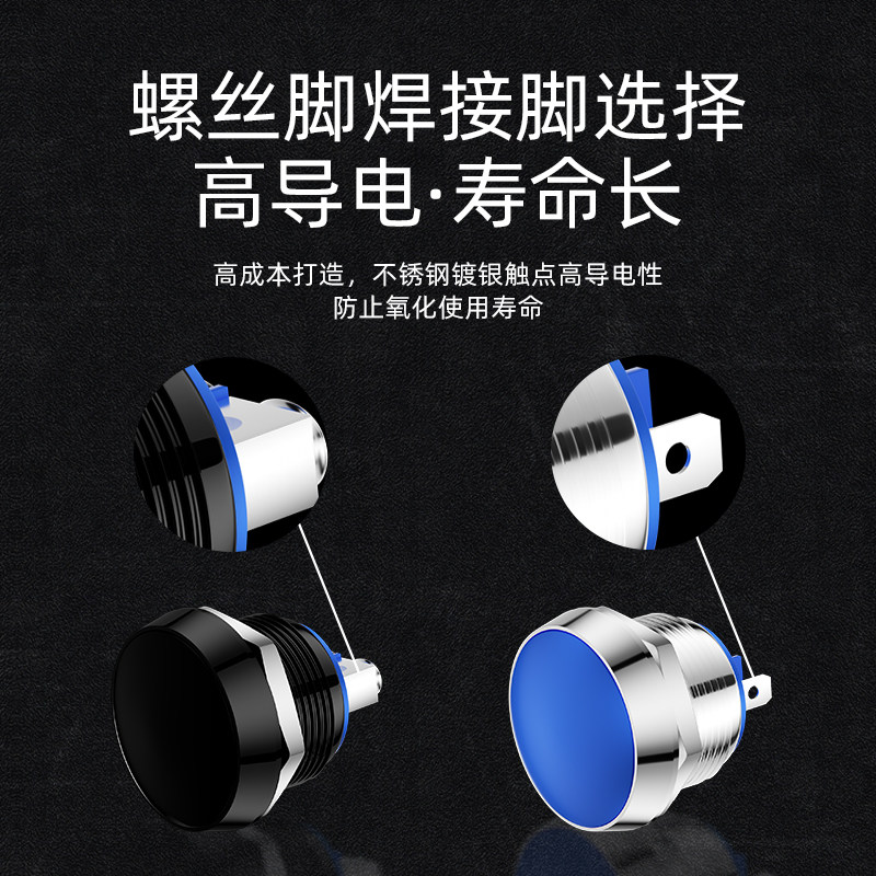 12mm球形金属按钮开关防水自复位常开 彩色按钮 焊脚 螺丝脚黑色
