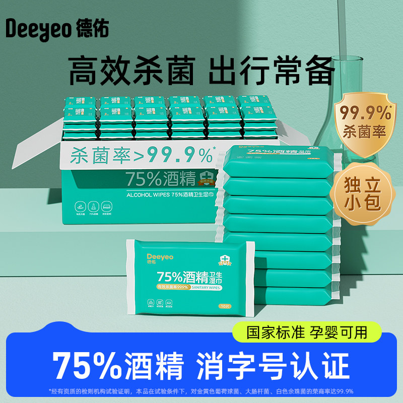 天猫德佑旗舰店,德佑75%酒精湿巾小包便携装,小包便携更卫生 99.9%高效杀菌