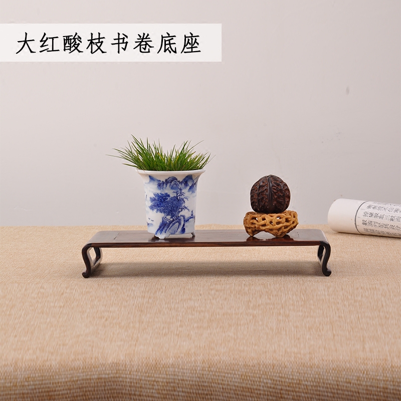 淘宝汇艺轩红木底座总店,大红酸枝长方木雕文房书卷摆件底座
