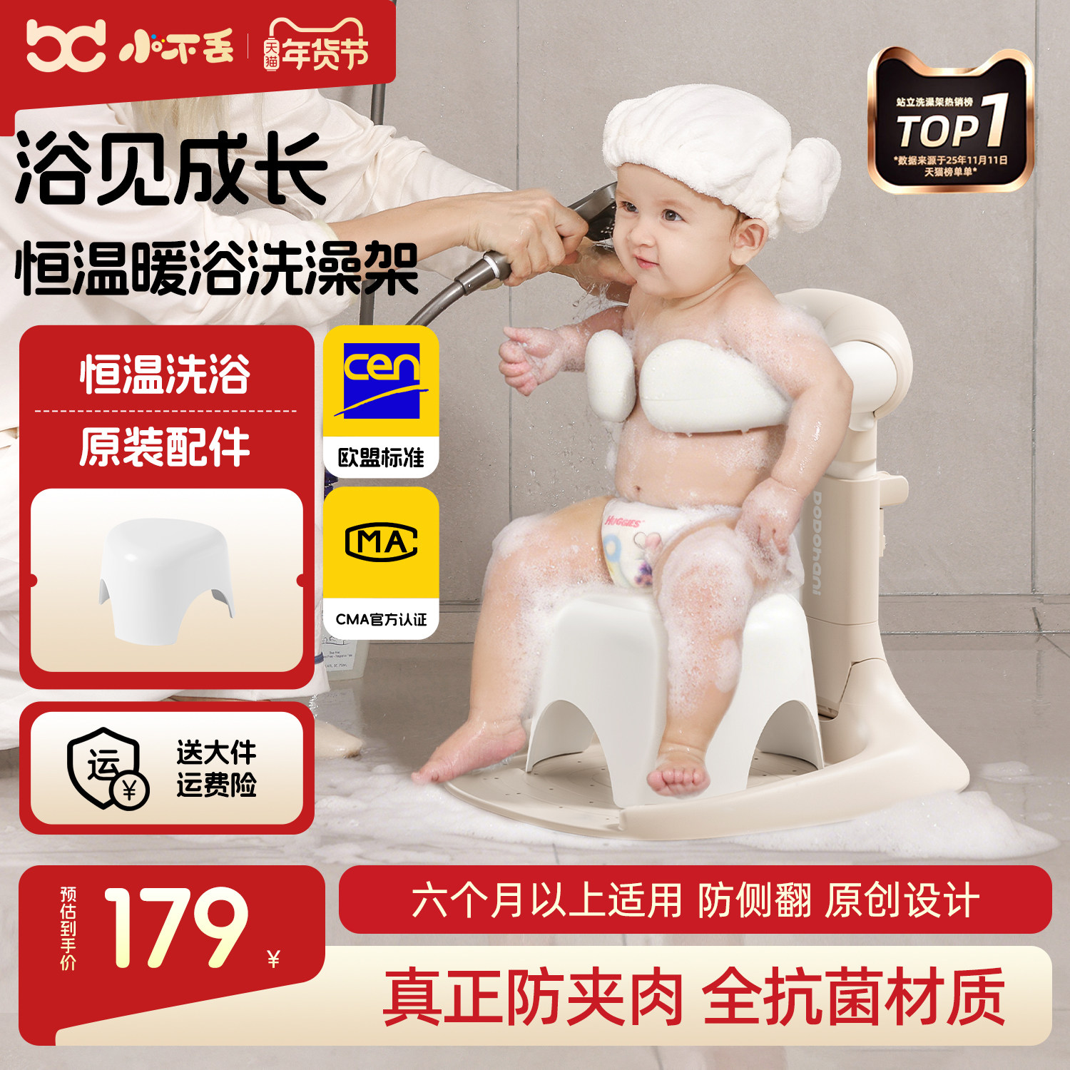 天猫小不丢旗舰店,小不丢宝宝站立洗澡台可折叠便携,【全程流水沐浴X拒绝细菌盆浴】恒温防烫伤