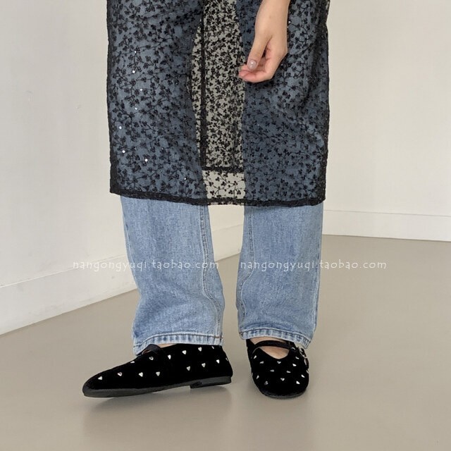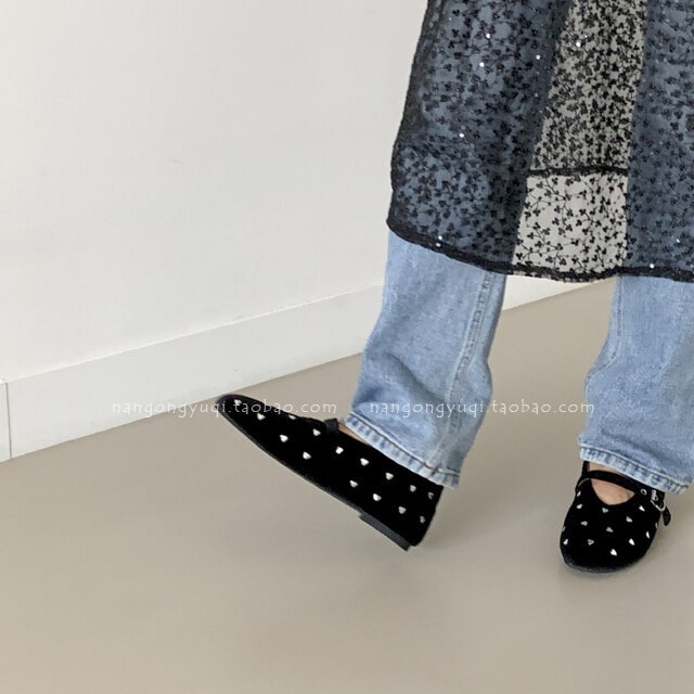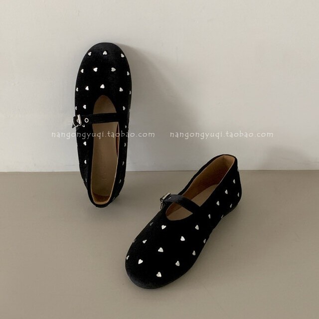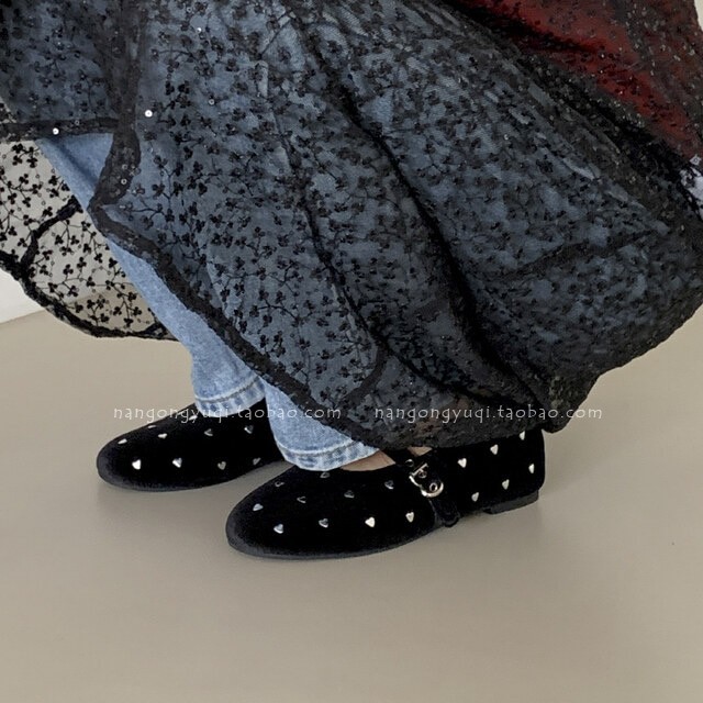 淘宝韩国女鞋琪琪的店,心形装饰绒面圆头一字带玛丽珍鞋