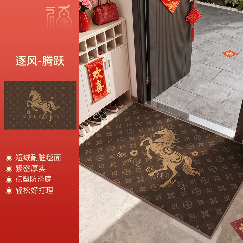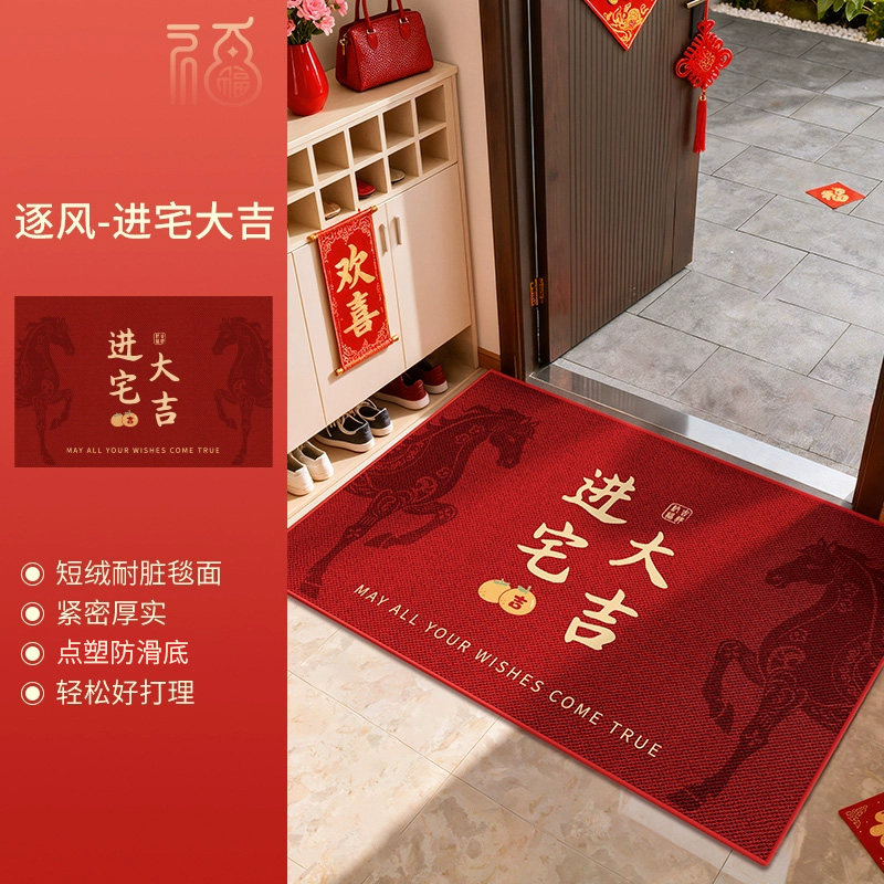 天猫天天特卖工厂店,入户门地垫2026新款水晶绒进门马年门垫脚垫红色脚踏垫地毯防滑