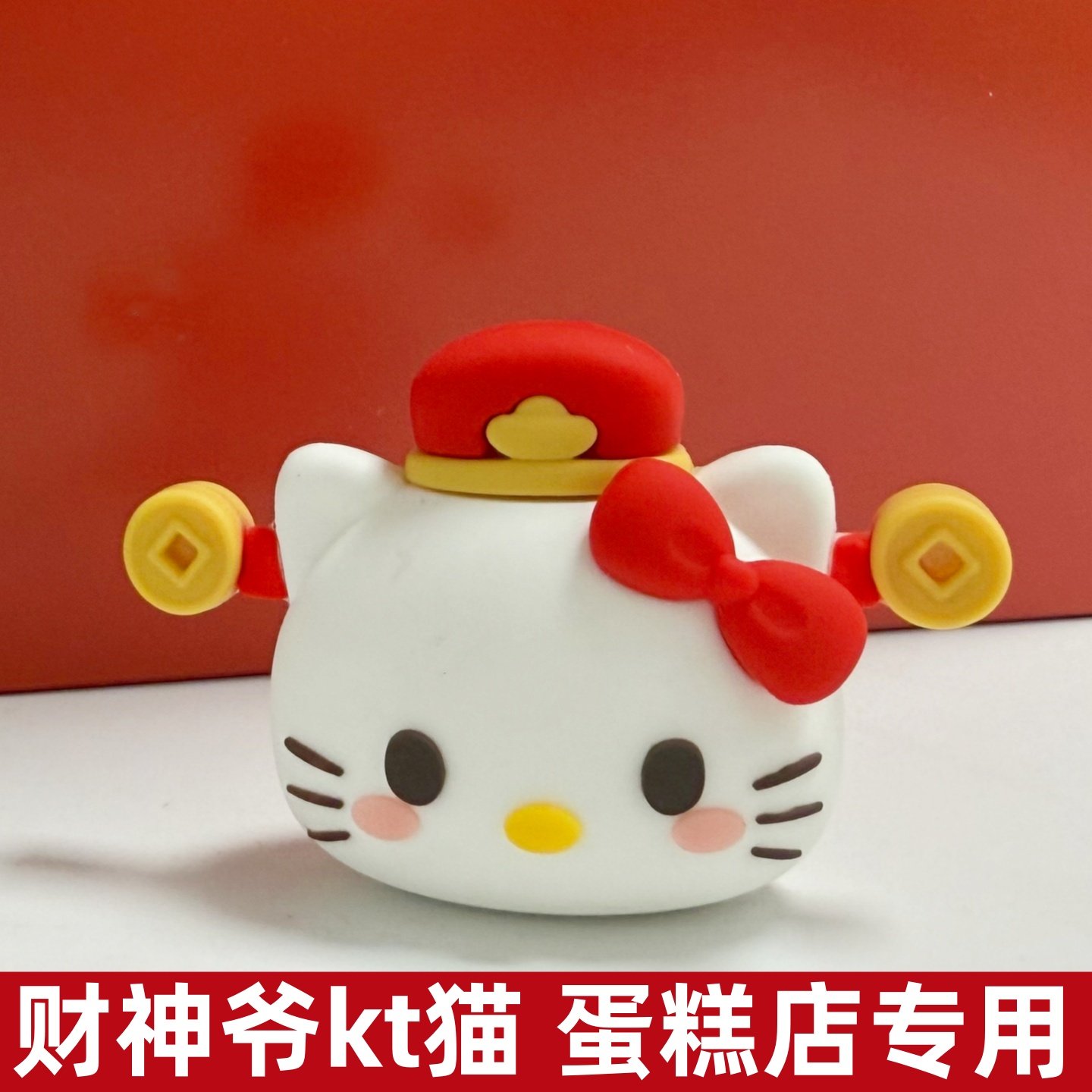 淘宝萌萌家蛋糕装饰批发,可爱软胶立体KT猫蛋糕装饰摆件红色财神KT猫头节日生日装扮配件
