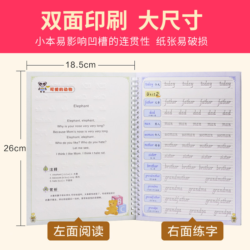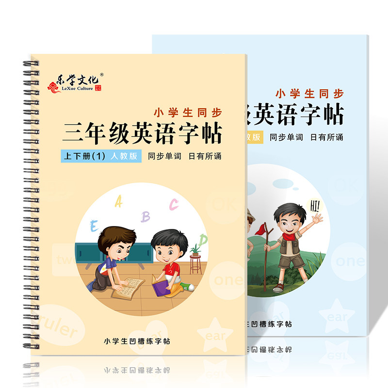 天猫乐学文化旗舰店,三年级英语练人教版上册2020 26字帖,小学三年级课本同步英语上下册2本 送笔芯