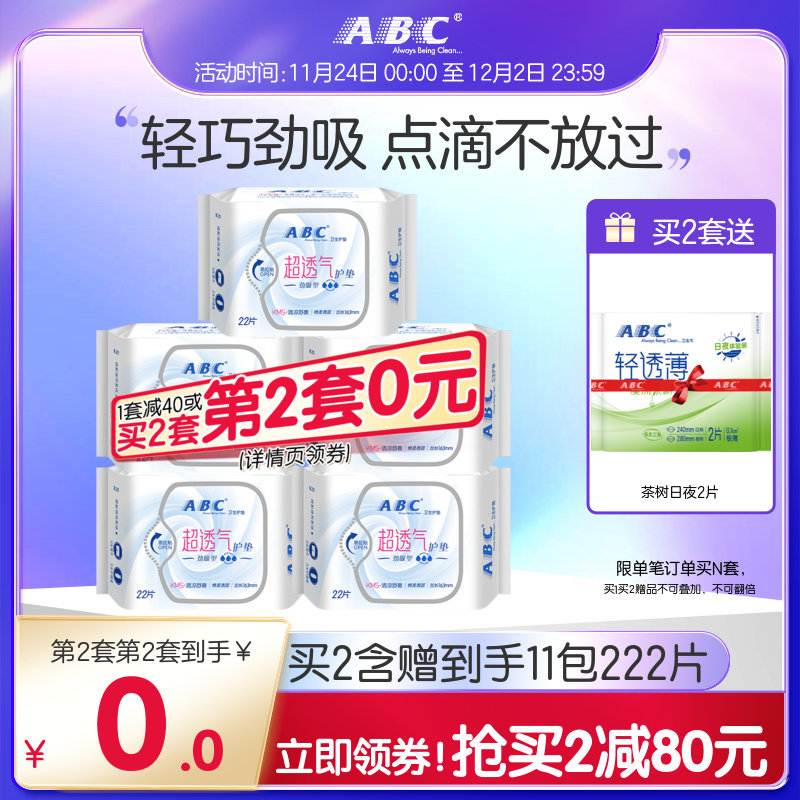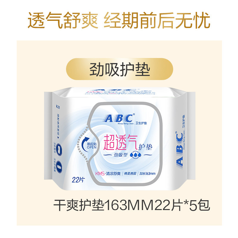 天猫abc官方旗舰店,ABC旗舰店卫生巾轻薄无感透气干爽棉柔劲吸护垫5包组合,吸收护垫 经期前后无忧 含KMS 配方