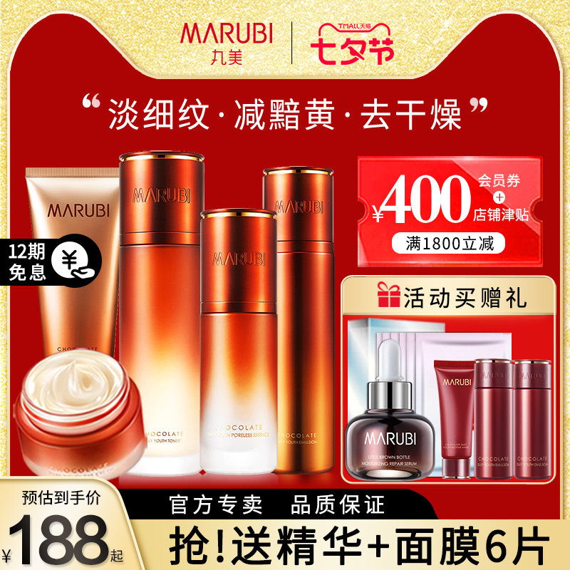 天猫marubi丸美红动专卖店,丸美巧克力丝滑套装补水抗皱水乳,丝滑润泽 淡化潜在纹