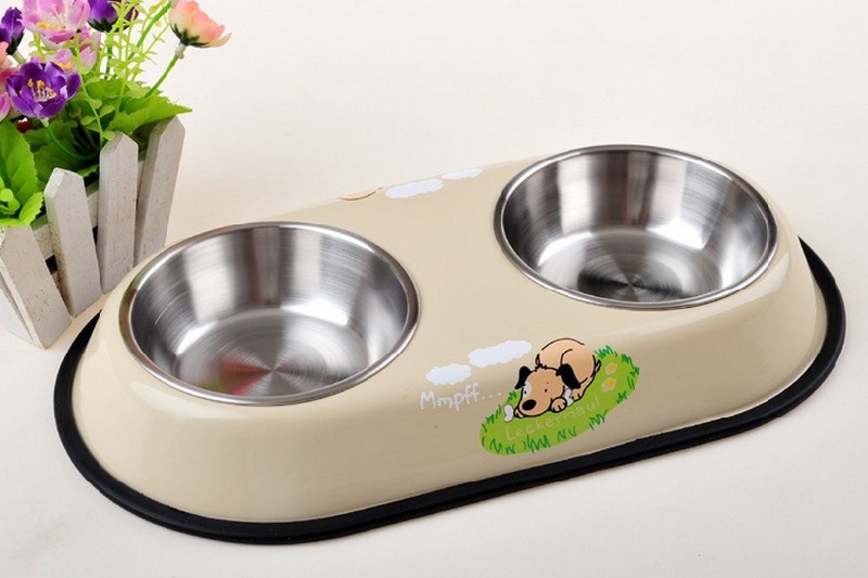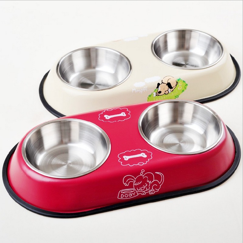 淘宝刘口水宠物生活馆,包邮不锈钢双口高档狗碗泰迪双口碗