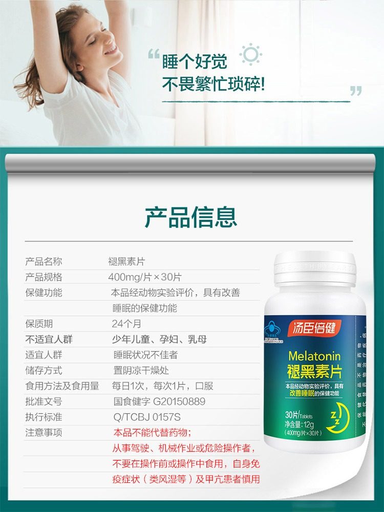 淘宝君美健康膳食店,汤臣倍健褪黑素安瓶助眠褪退黑色素睡眠片官方正品非美国进口软糖