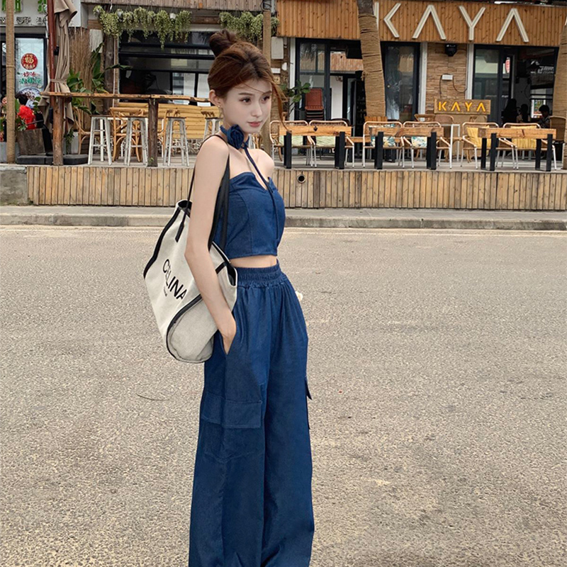 天猫帕兰茉旗舰店,茶系穿搭一整套辣妹牛仔套装2024新款夏季抹胸上衣工装裤两件套潮,订阅收藏店铺不定时抽取小仙女免单