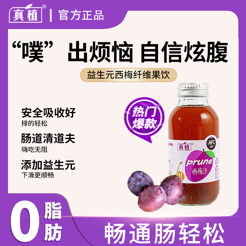 天猫真植食品旗舰店,真植西梅汁膳食纤维含NFC果汁,0脂0蔗糖添加益生元膳食纤维含NFC果汁饮料