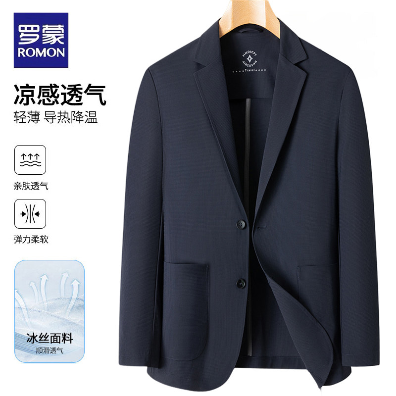 天猫romon罗蒙臻伊专卖店,罗蒙冰丝男士夏季西装外套男薄款,冰丝亲肤,柔顺舒适,防晒透气