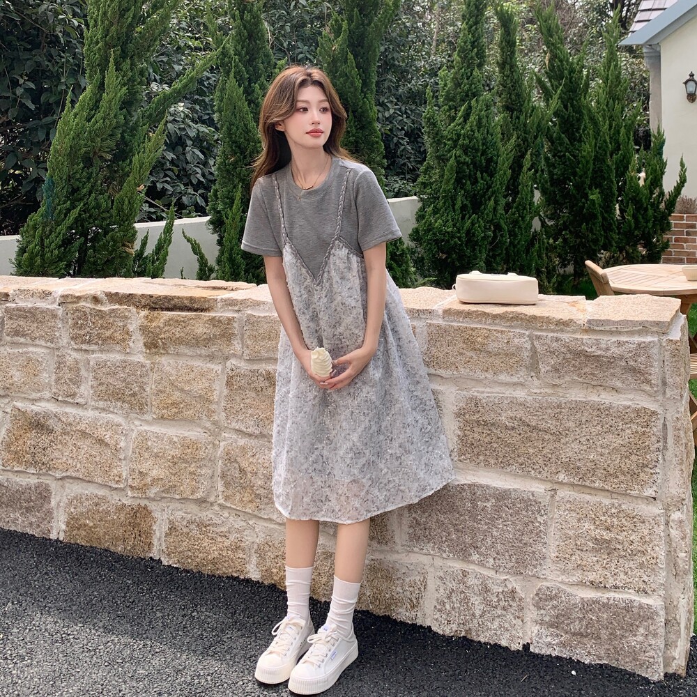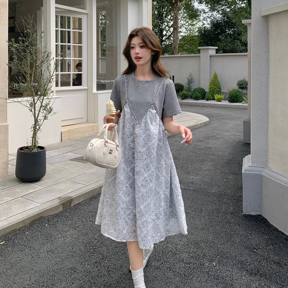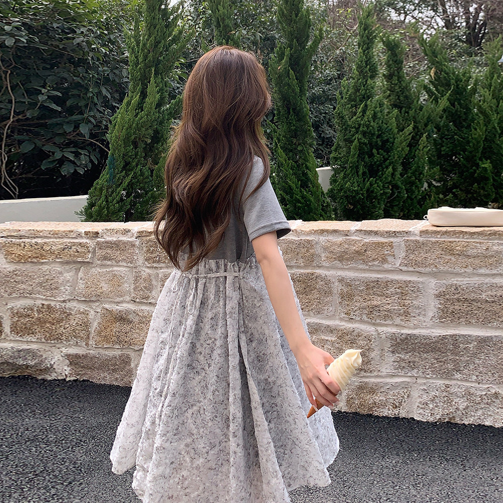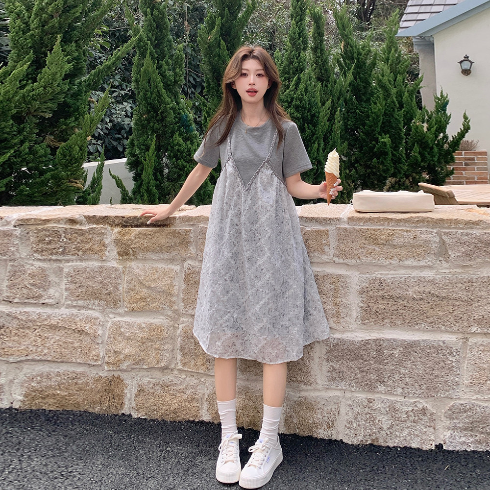 淘宝飞天服务店,灰色假两件拼接连衣裙女夏2025新款超仙甜美裙子艺术感穿搭巨好看