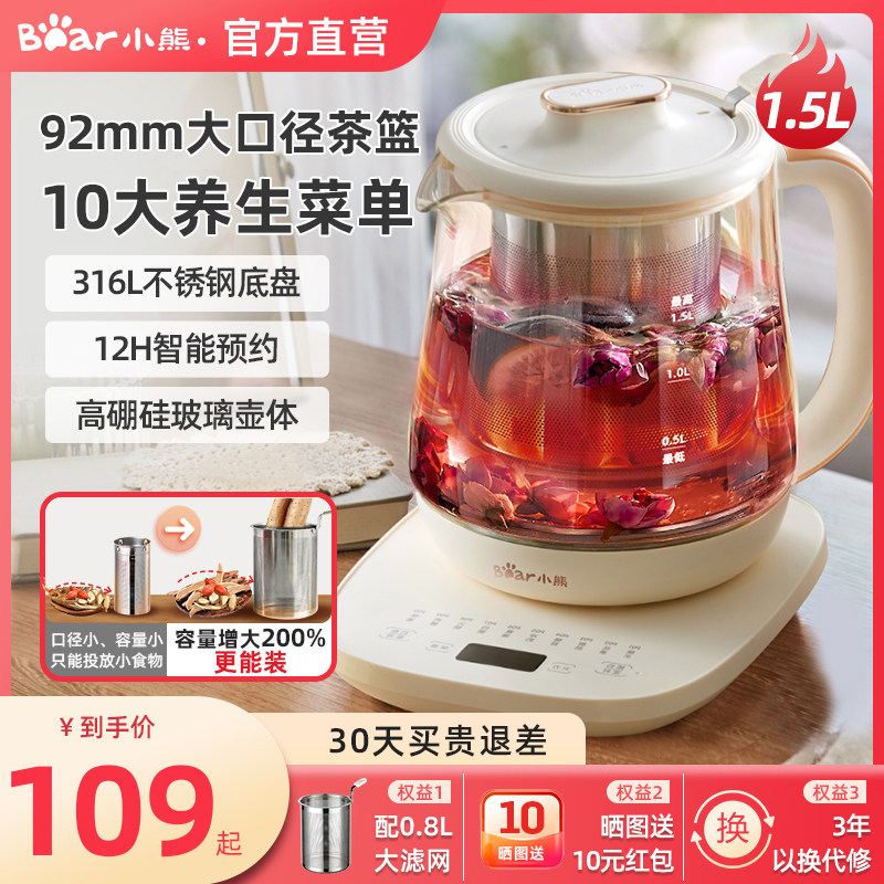 天猫小熊梓初专卖店,小熊大滤网多功能养生壶,92mm大口径茶篮 11段智能恒温 12H智能预约
