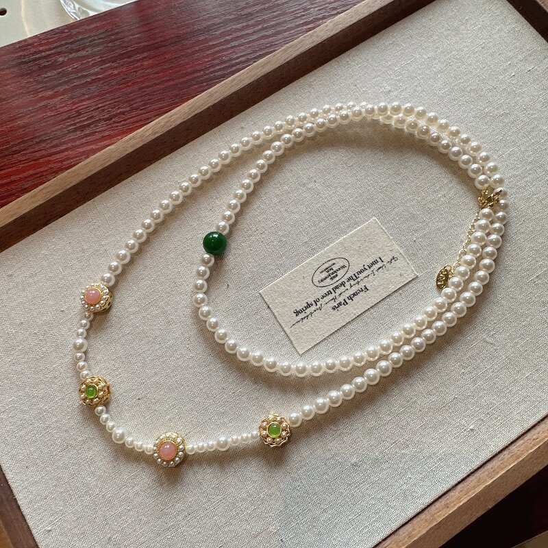 2024年新中式风小众彩色石头长款珍珠项链国风毛衣链高级气质百搭