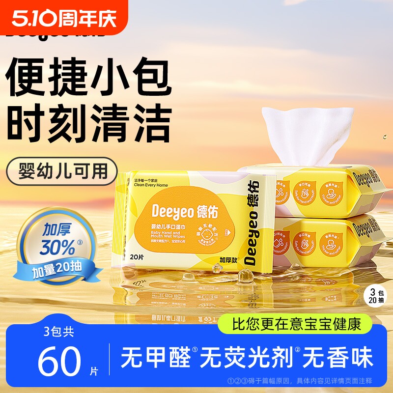 天猫淘工厂美妆直营,德佑婴儿湿巾外出便携小包湿纸巾随身宝宝儿童学生手口专用20抽