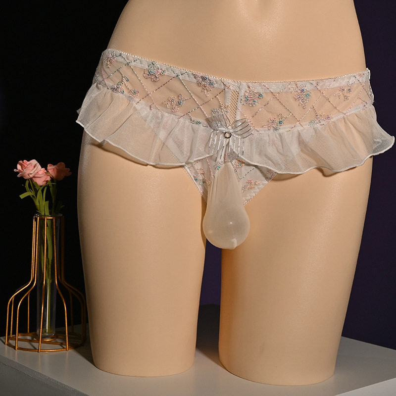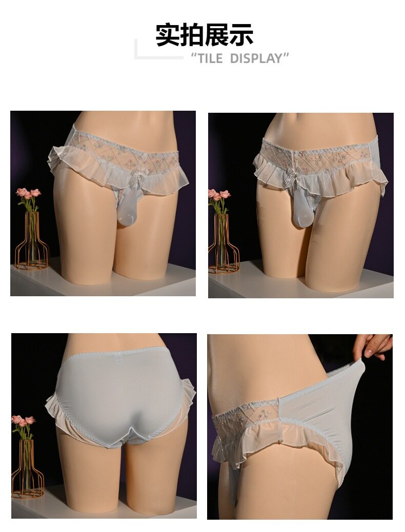 淘宝伪娘变装平价店,日系小清新男士内裤甜美荷叶边清纯可人伪娘中低腰三角裤性感诱惑