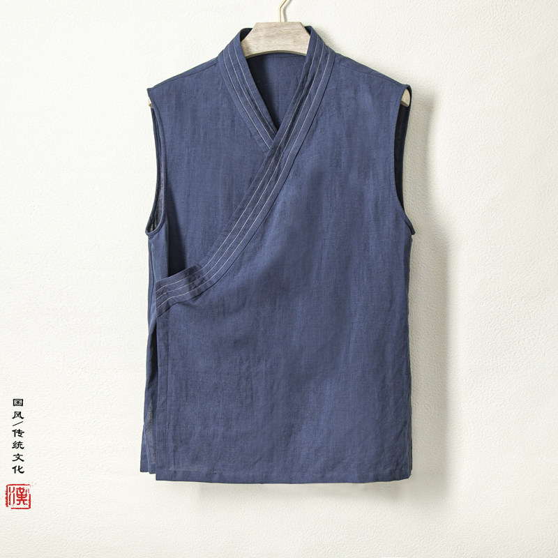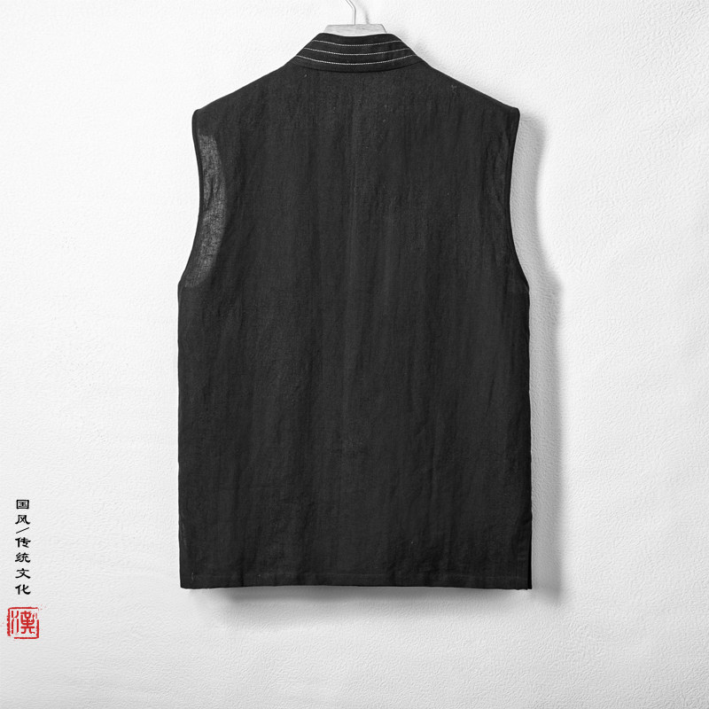 淘宝HK潮铺男装,中国风男装斜襟棉麻背心中式无袖改良汉服民族服装马甲夏季薄透气
