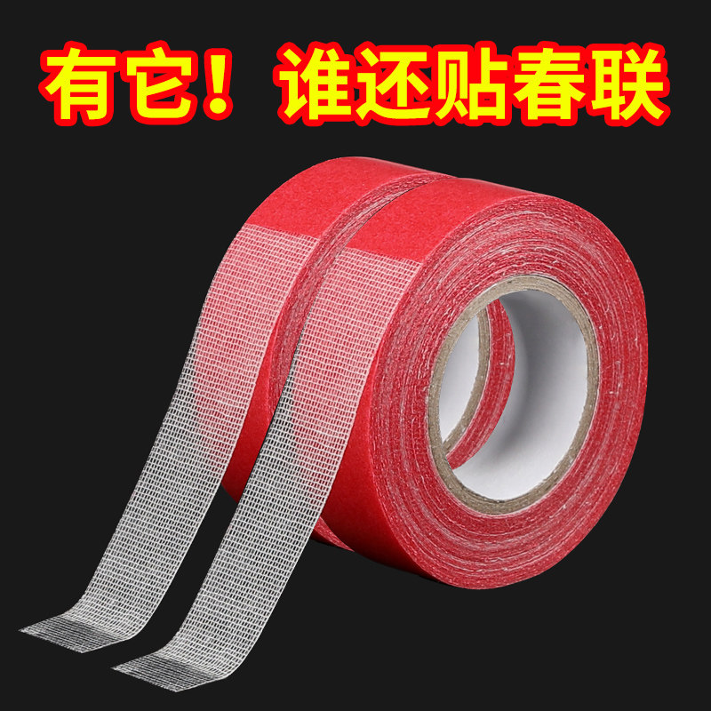 网格双面胶带贴春联对联粘胶不留痕3m强力无痕网格布胶福字胶条