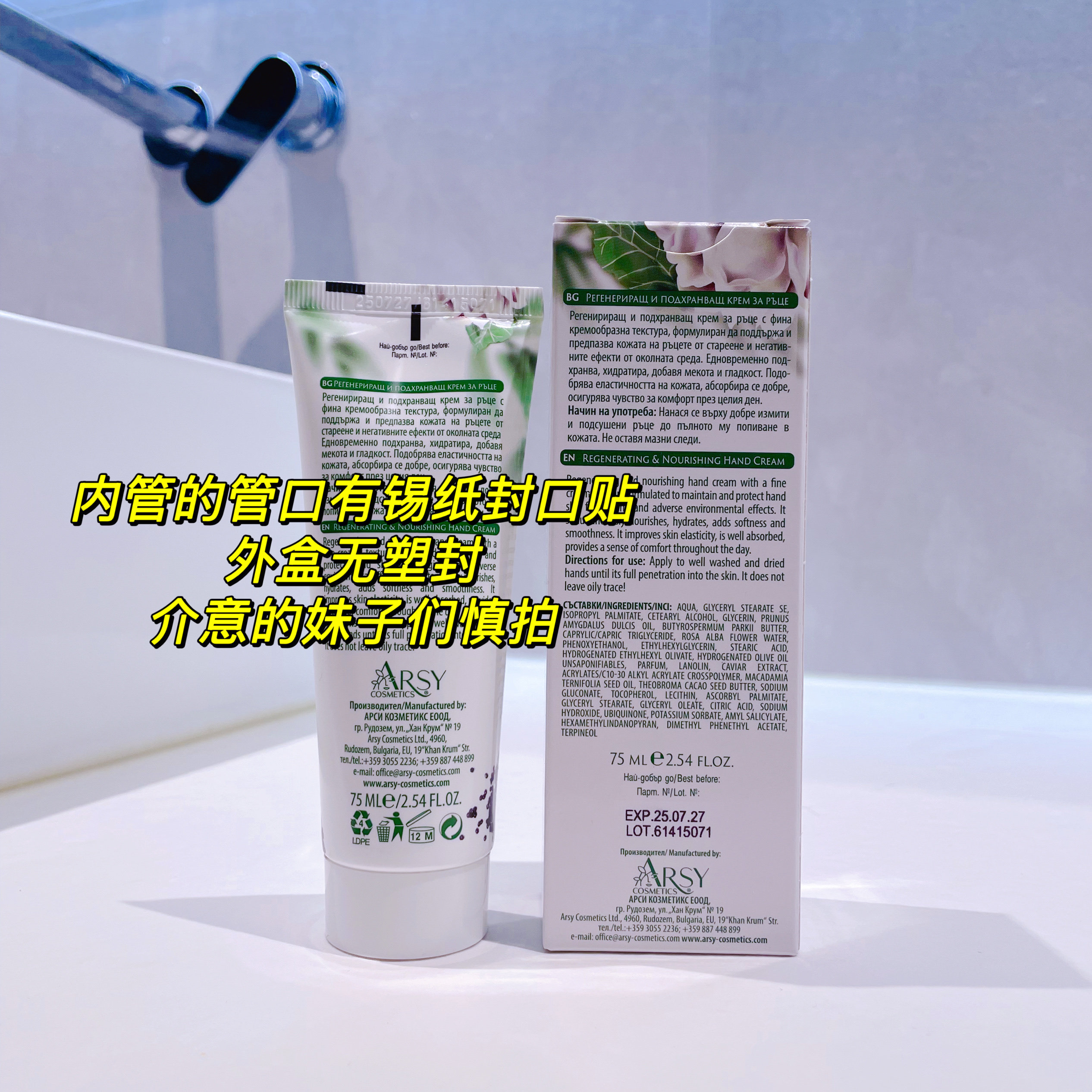 保加利亚白玫瑰精油护手霜75ml原装Arsy含鱼子酱精华维生素A滋润