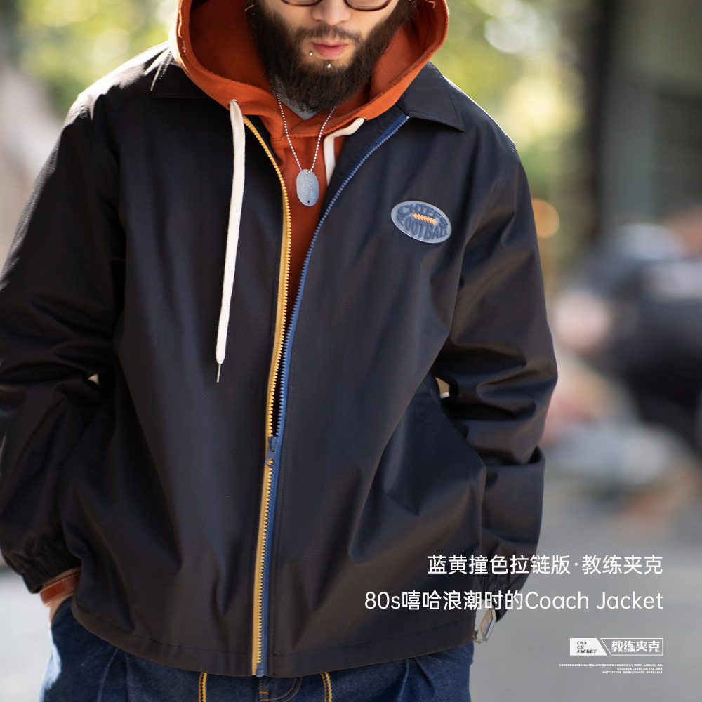 马登工装 美式复古尼龙教练夹克cityboy撞色拉链翻领街头外套男春