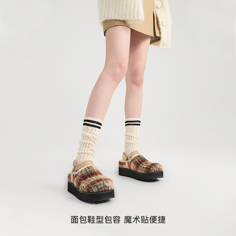 天猫lostinecho旗舰店,lostinecho加绒外穿勃肯拖鞋,圆头厚底提带勃肯拖鞋 毛绒内里温暖治愈