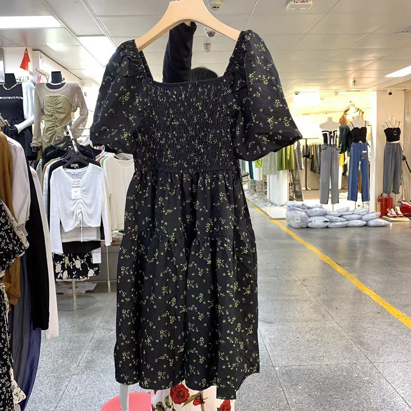淘宝韩惑女装,夏季泡泡袖新款田园风松紧连衣裙