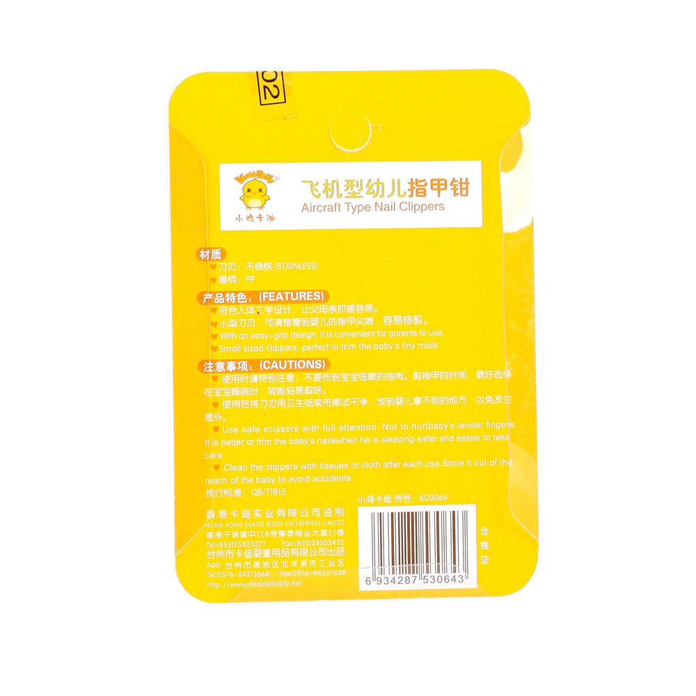 小鸡卡迪KD3064 飞机型指甲钳 婴儿指甲剪刀 宝宝