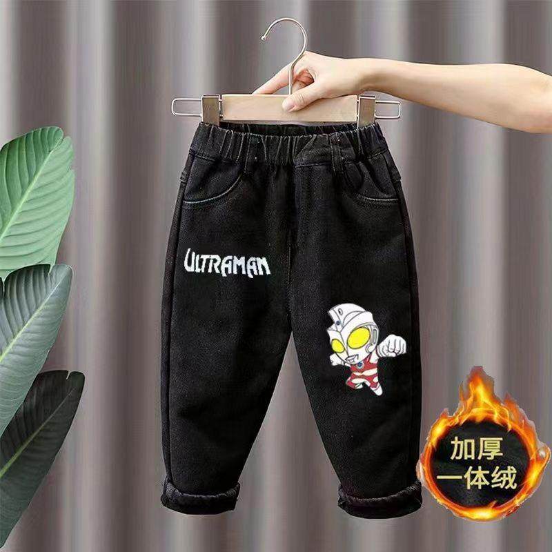 淘宝奥特曼衣服店,男童奥特曼一体绒牛仔裤秋冬儿童弹力裤子加绒中小童男孩宝宝长裤