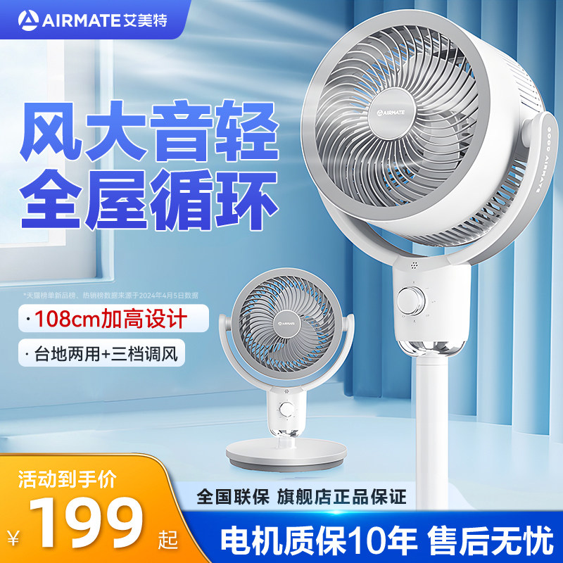 天猫艾美特居家日用旗舰店,艾美特空气循环扇台地两用落地扇,升级108cm加高设计