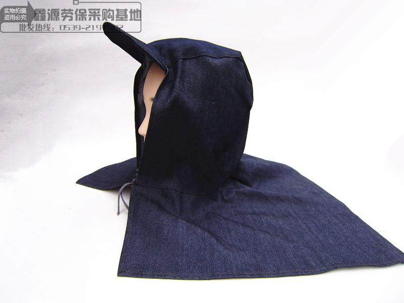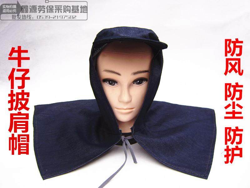淘宝瑞安劳保用品批发,牛仔套头披肩帽劳保牛仔布防尘风帽