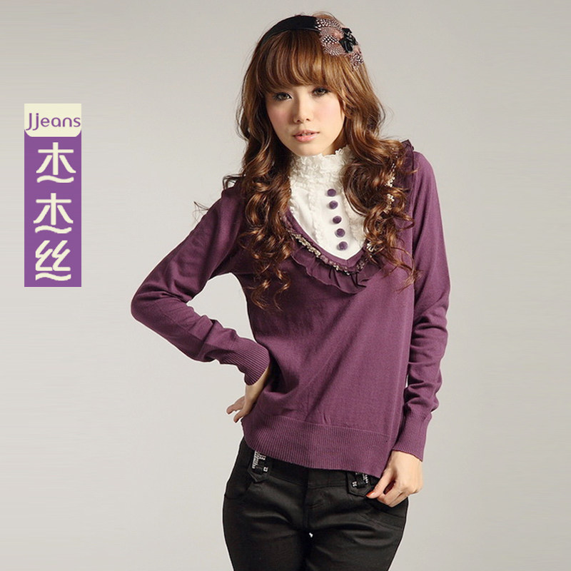 淘宝杰杰丝女装官方店,美歌5杰杰丝优雅雪纺花立领针织衫,全店领券立减5元 满89立减10元