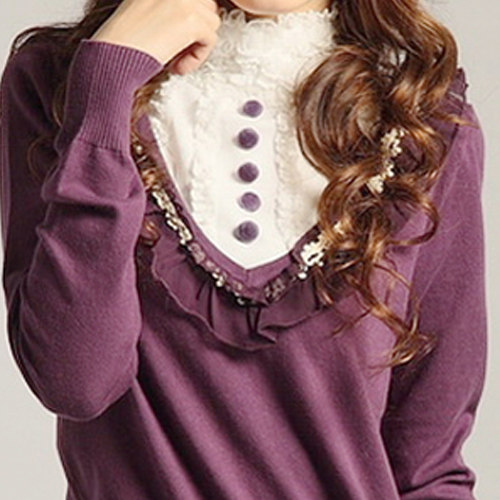 美歌5杰杰丝优雅雪纺花立领针织衫