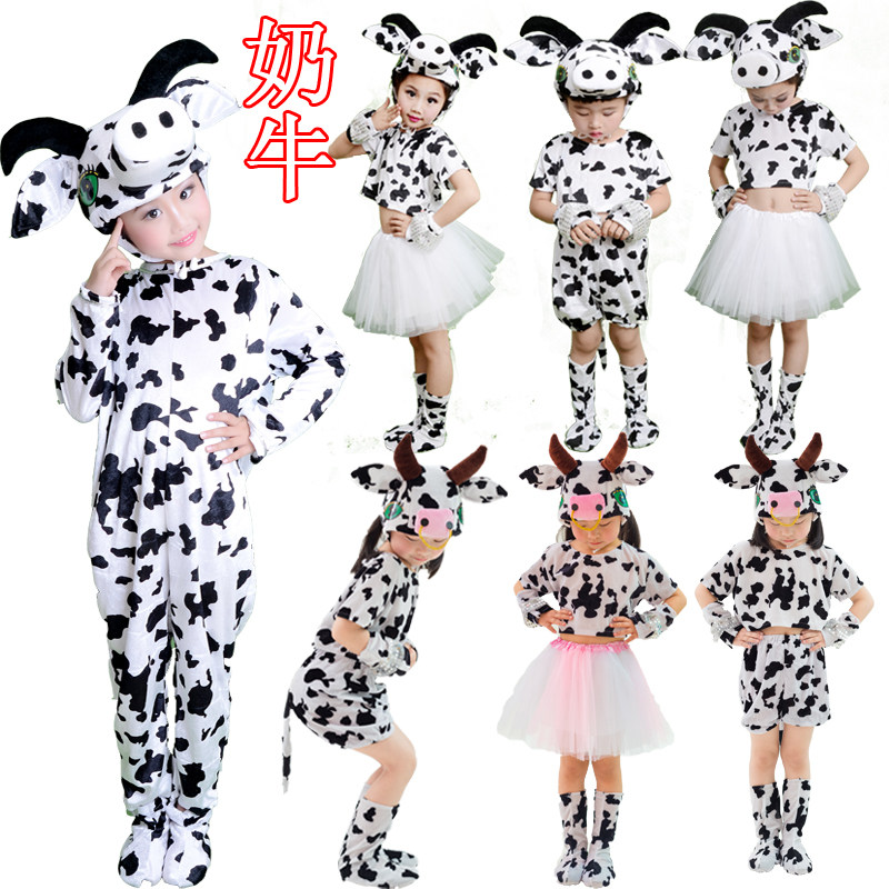 六一儿童动物表演服演出服牧场小乖乖奶牛服装卡通动物造型服