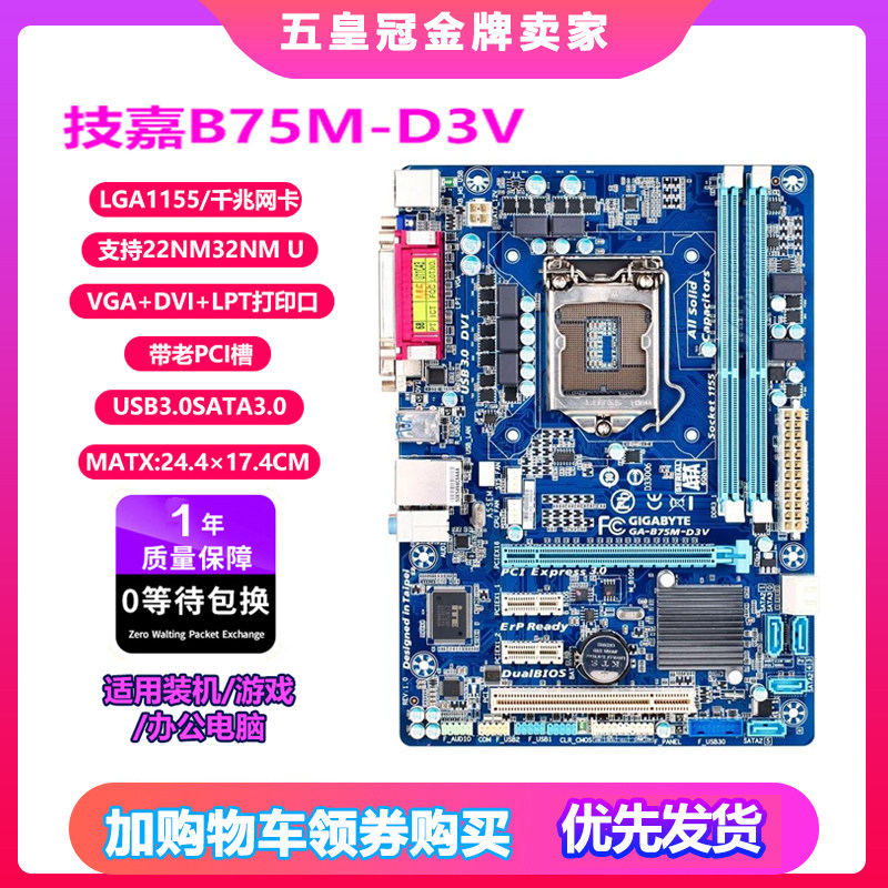 淘宝广州高盛电脑科技,技嘉B75M-D3V主板CPU8G四件套