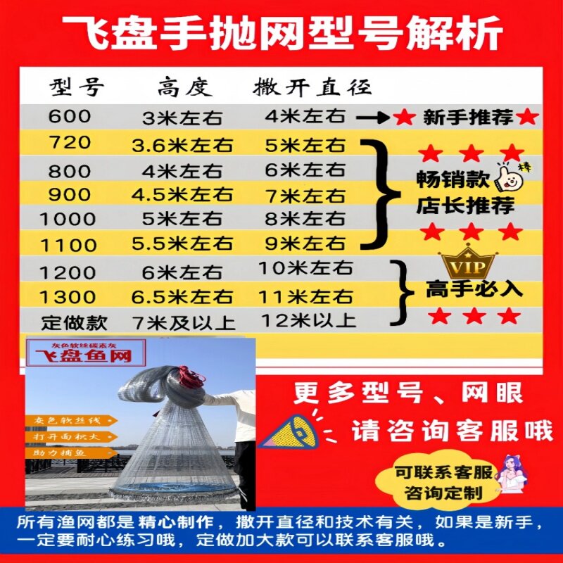 淘宝海大鱼渔业,新款柔软鱼线飞盘网捞鱼网手抛网