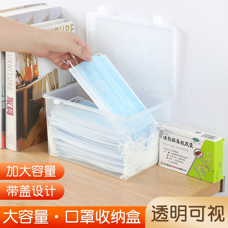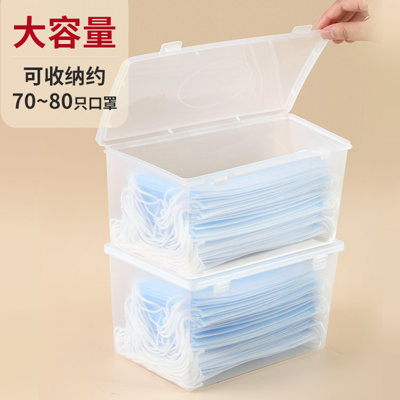 口罩收纳盒家用玄关大容量存放口鼻罩盒桌面透明带盖防尘储物盒