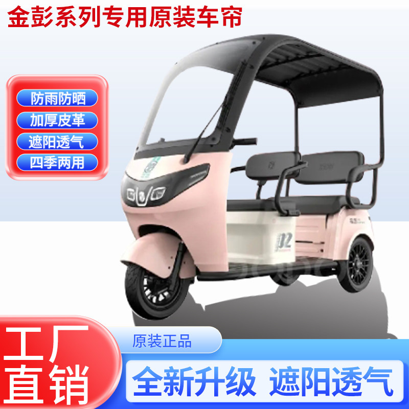 淘宝快乐三轮,适用于金彭P2原装防雨遮阳四季网纱帘一体三轮车雨棚加厚雨帘