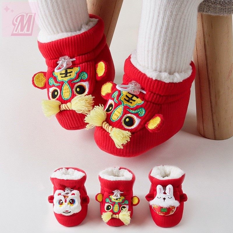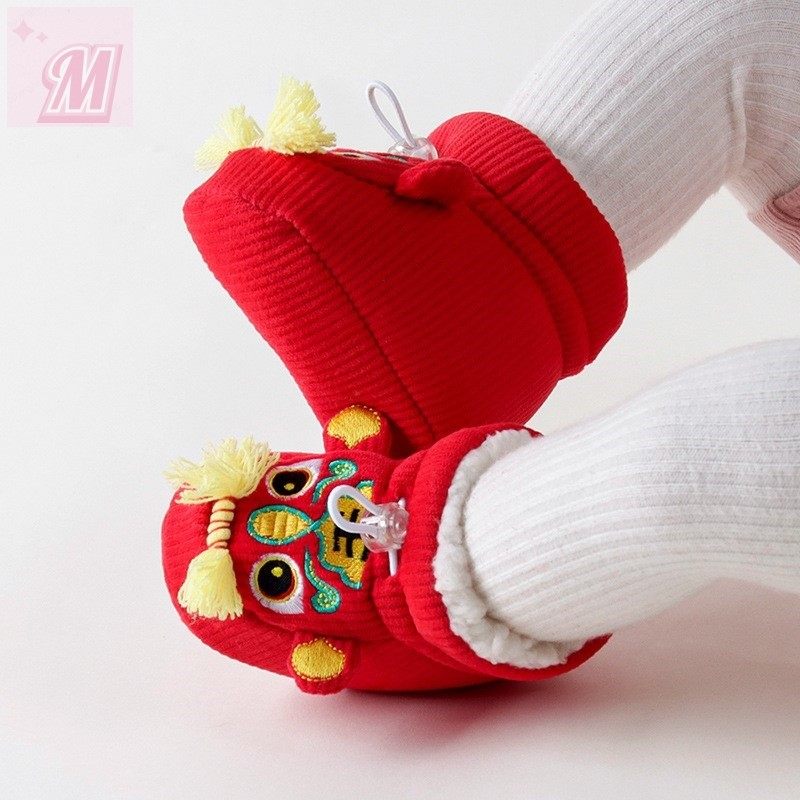 淘宝世贸精品百货,宝宝虎头鞋袜冬加厚加绒婴儿保暖袜套不掉新生儿加绒袜子红色新年