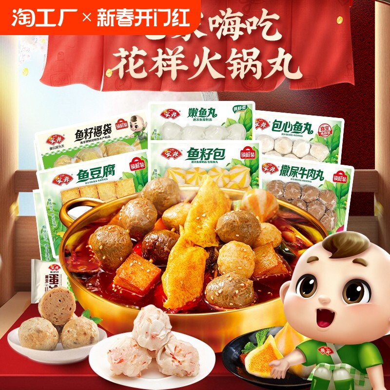 天猫淘工厂美妆直营,安井鱼豆腐鱼籽包黄金蛋饺包心嫩鱼丸火锅丸子食材速冻真空锁鲜装