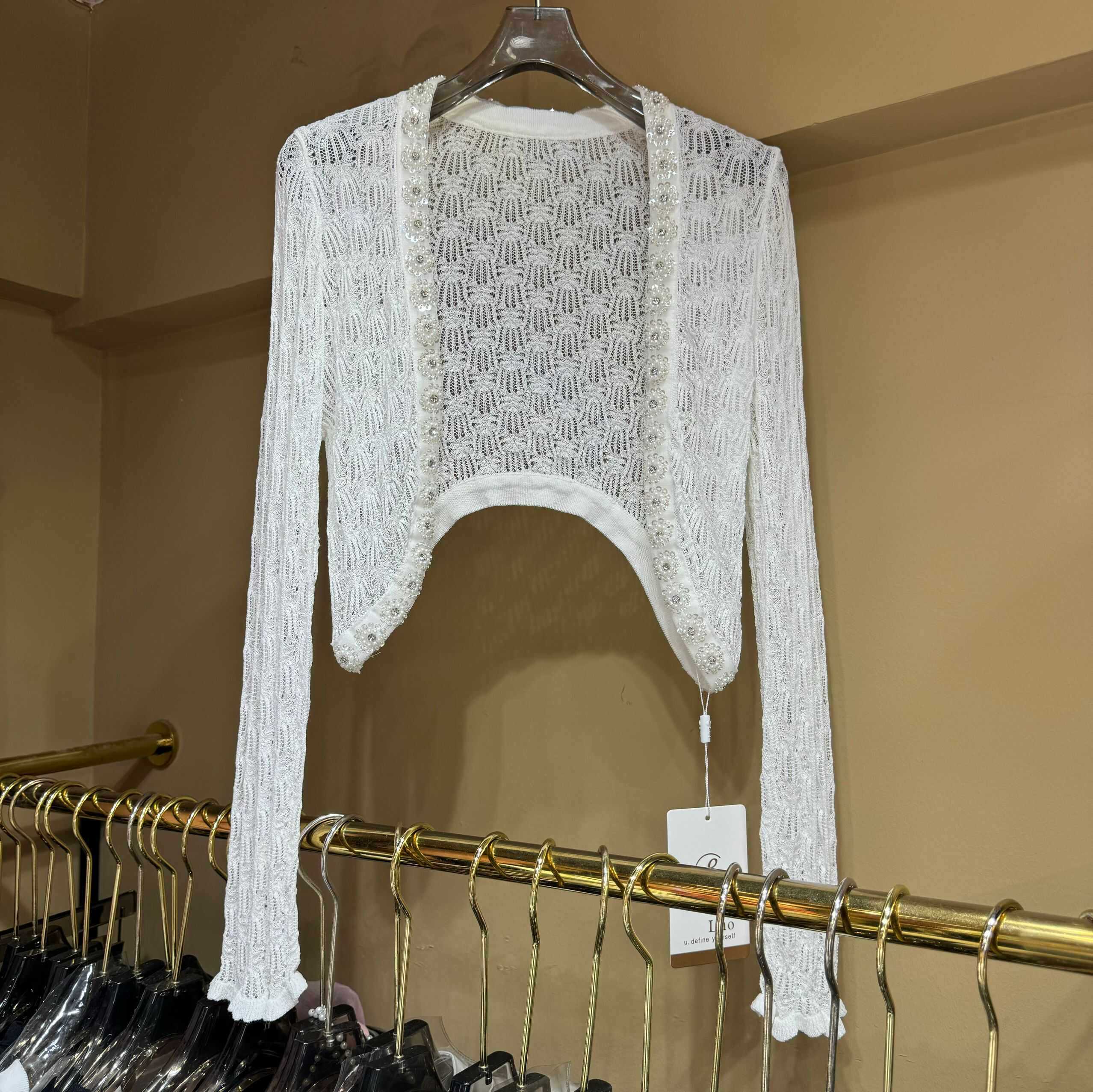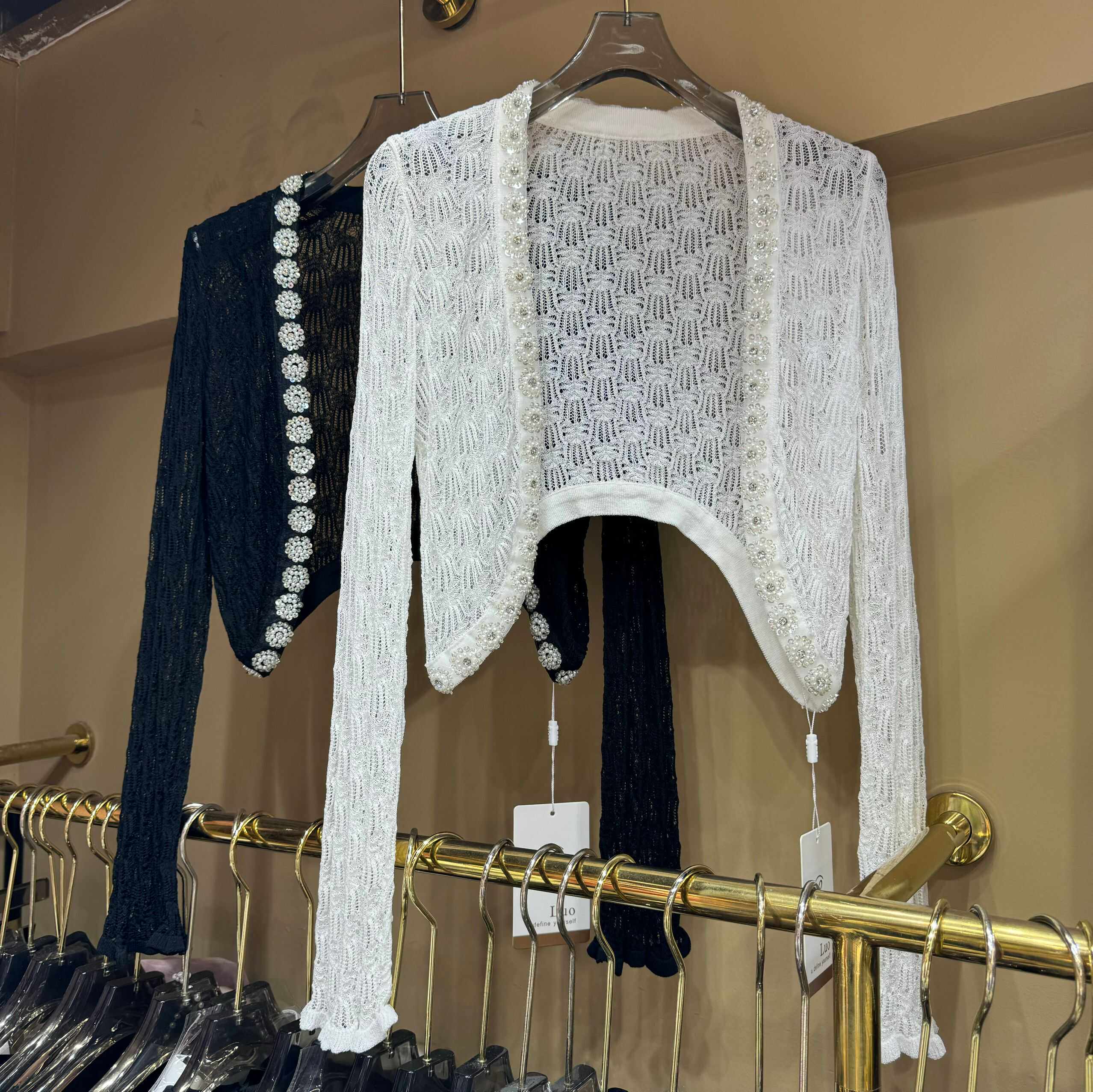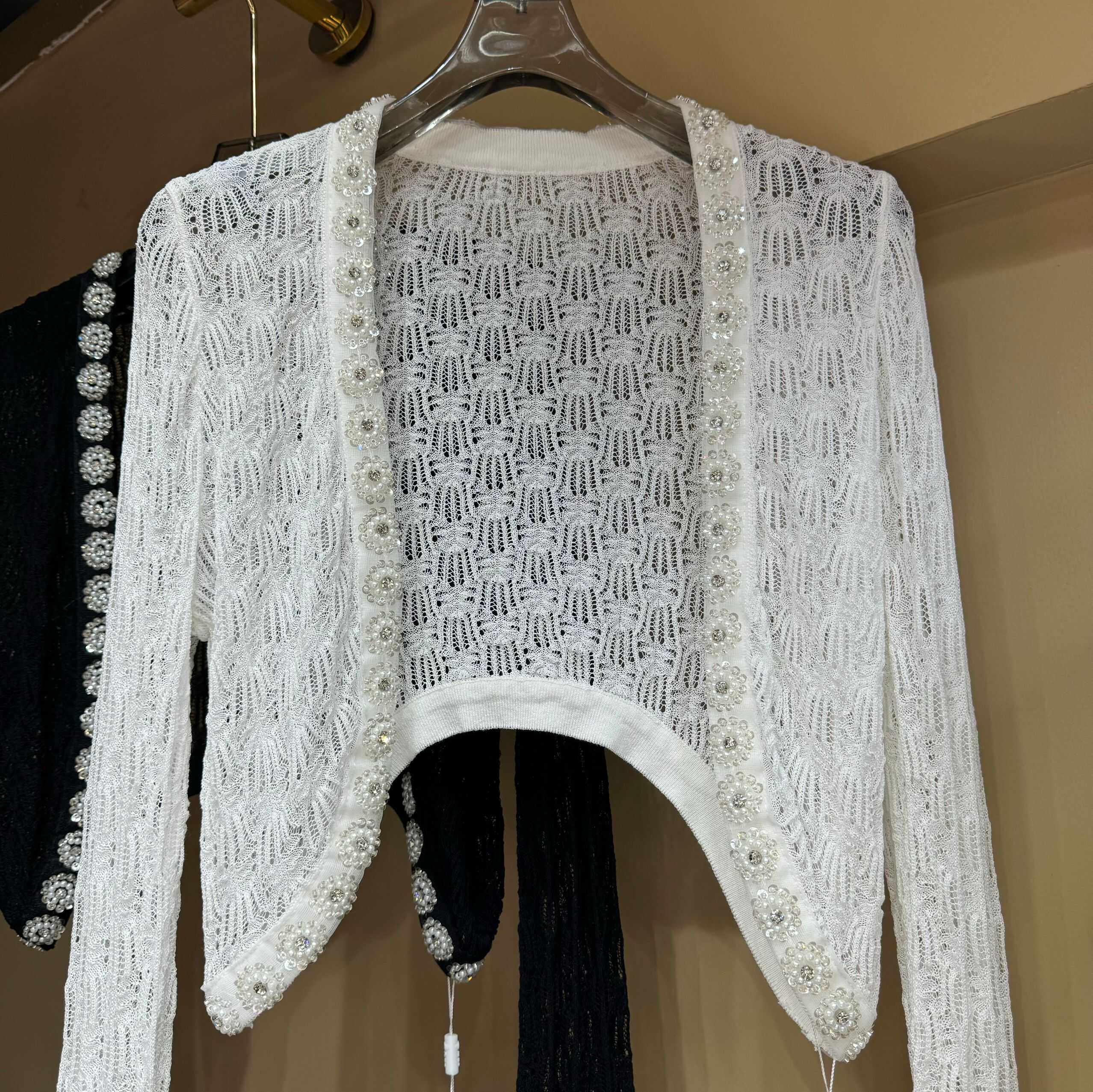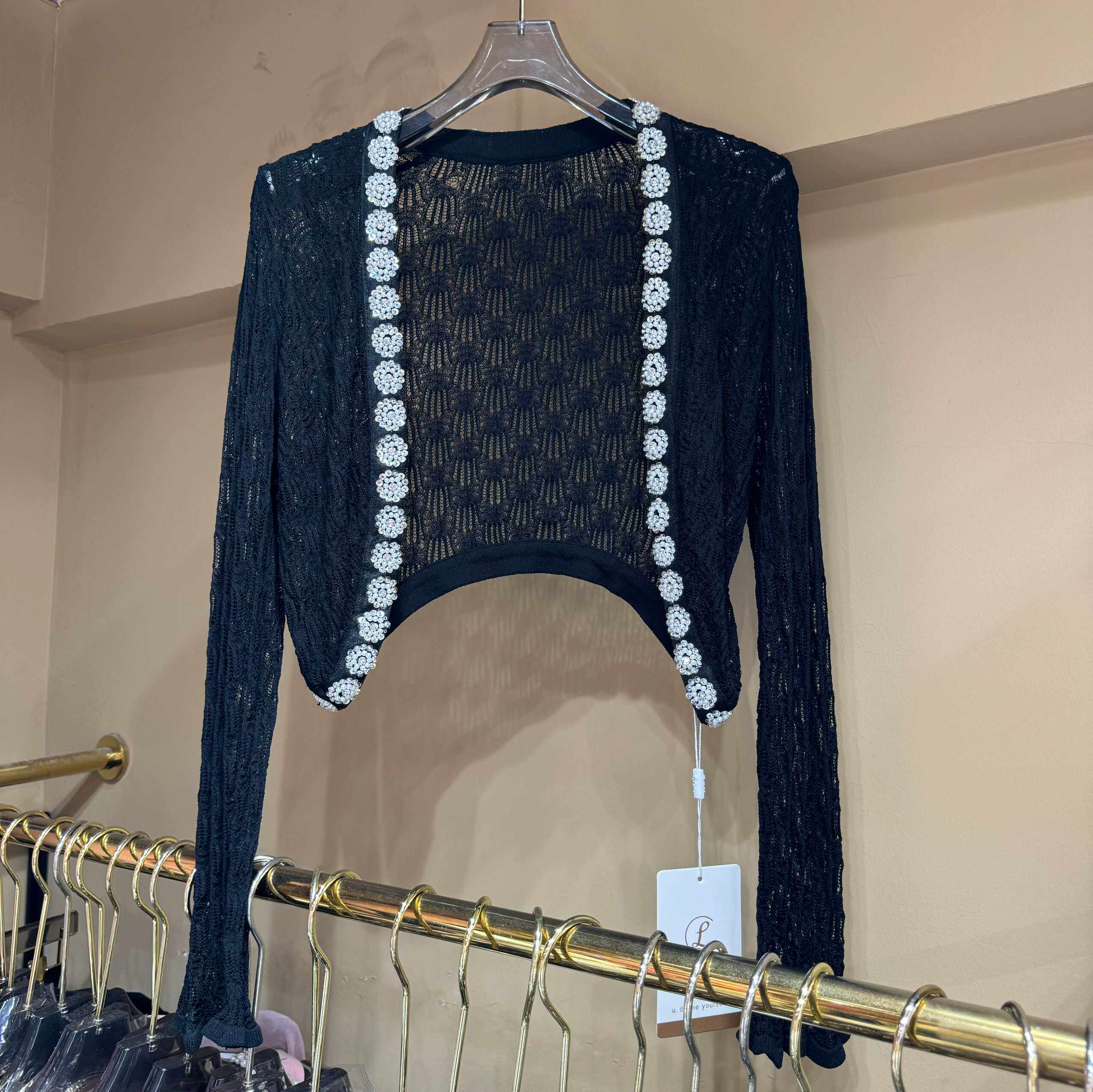 淘宝百合品质女装店,LUO冰丝外搭钉珠镶钻法式针织衫
