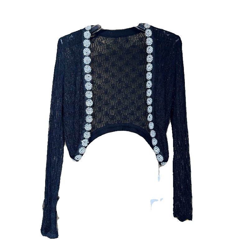 Luo高品质法式重工钉珠镶钻冰丝针织衫 百搭甜美薄款披肩外搭开衫