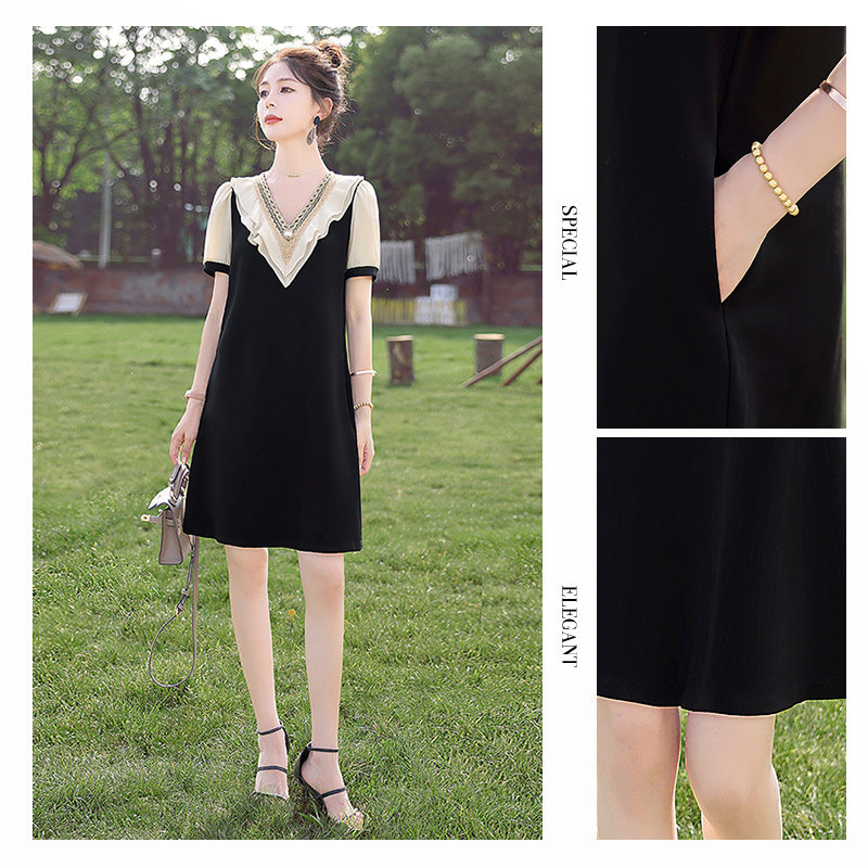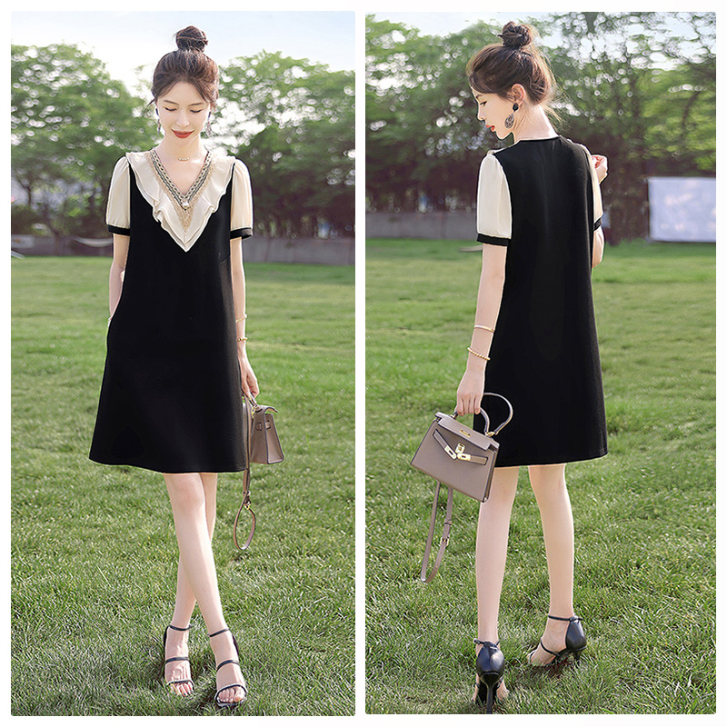 天猫丝柏舍女装旗舰店,丝柏舍时尚优雅荷叶边撞色连衣裙