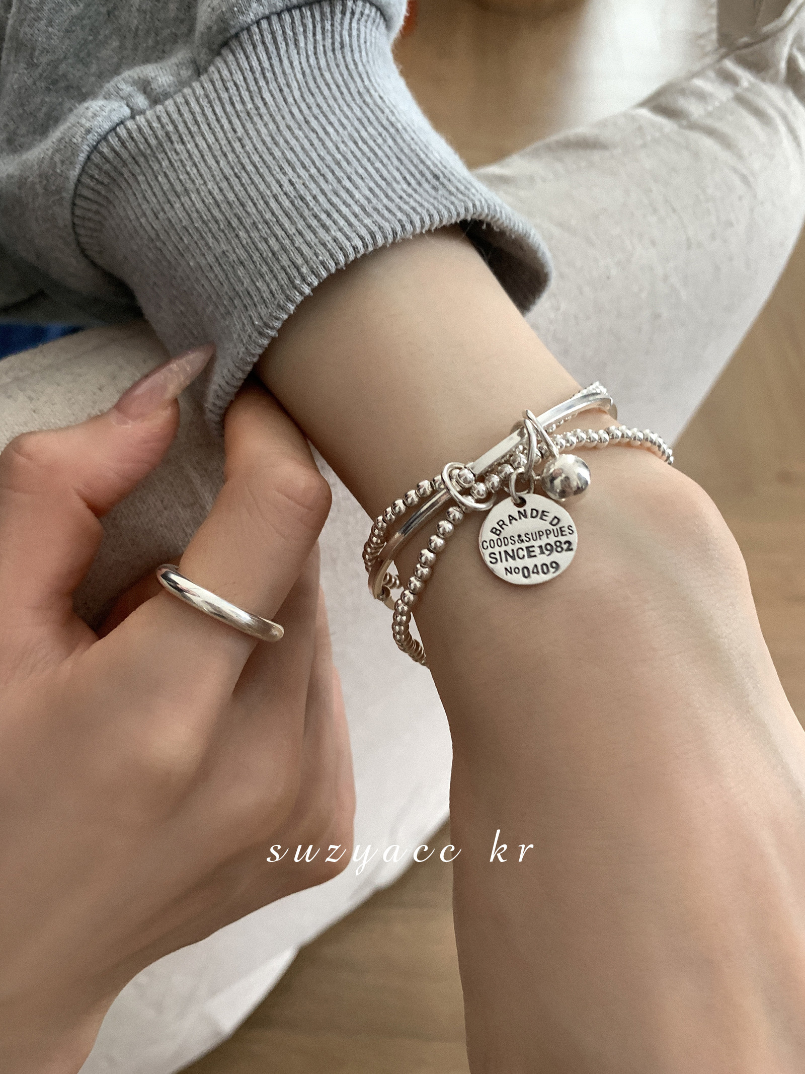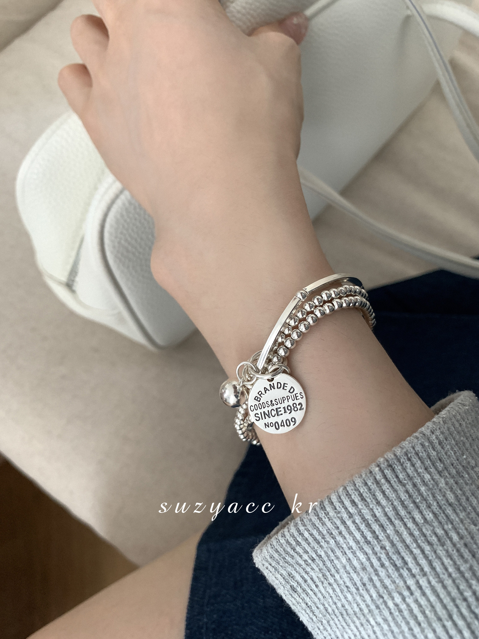 淘宝Suzyacc Kr,纯银三层圆牌吊坠手链