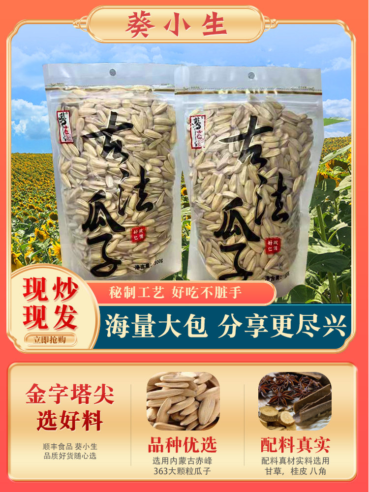 淘宝东杰食品商行,葵小生五香脱皮古法瓜子300g/袋内蒙古赤峰363薄皮大颗粒葵瓜籽
