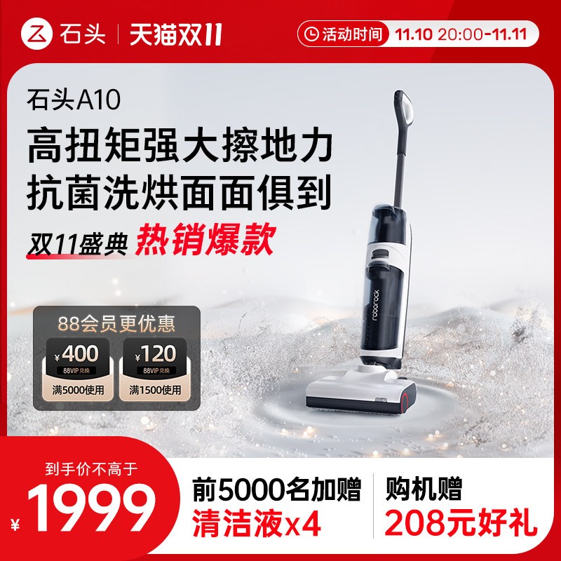 天猫石头电器旗舰店,【双11爆款】石头智能洗地机A10家用除菌贴边吸拖洗地一体机