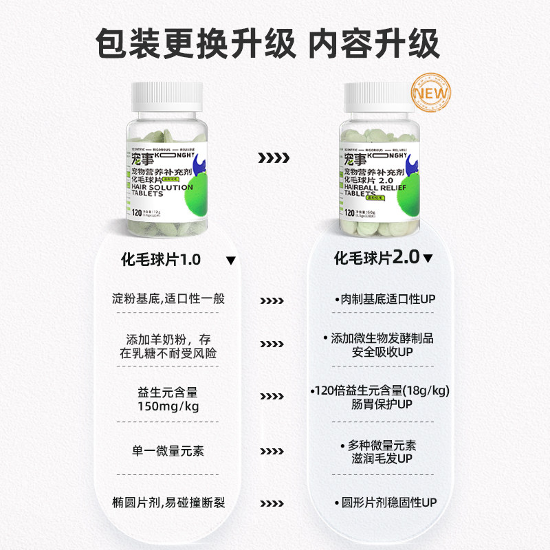 淘宝宠事konghy,【化毛球片2.0】宠事konghy猫化毛球片新版温和化毛调理肠胃猫草