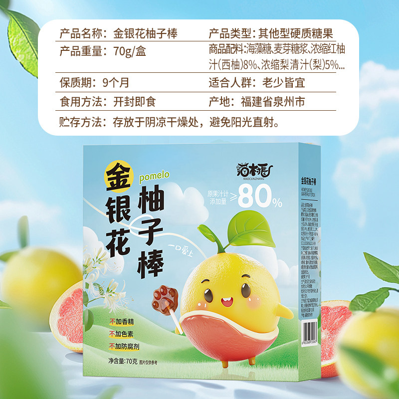 天猫天天特卖工厂店,猫村长金银花柚子棒秋梨膏棒棒糖休闲儿童办公解馋零食,潮流精品,品质保证