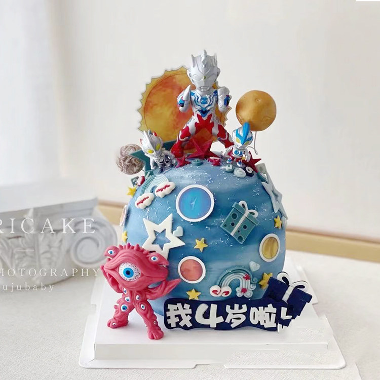 烘焙蛋糕装饰正版泽塔咸蛋超人怪兽玩偶摆件卡通英雄男孩生日插牌