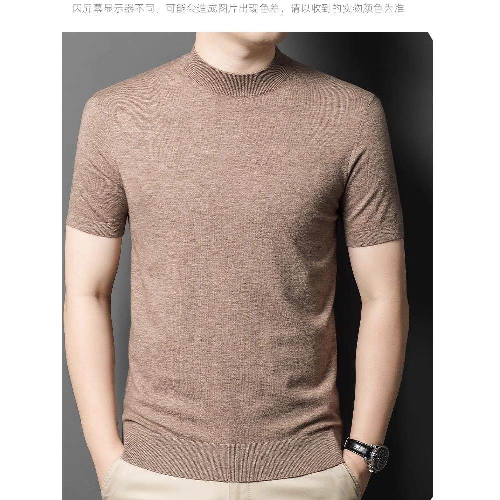 淘宝鄂尔多斯市男装,鄂尔多斯市产100%纯山羊绒杉男短袖半高领针织羊毛衫加厚半袖毛衣
