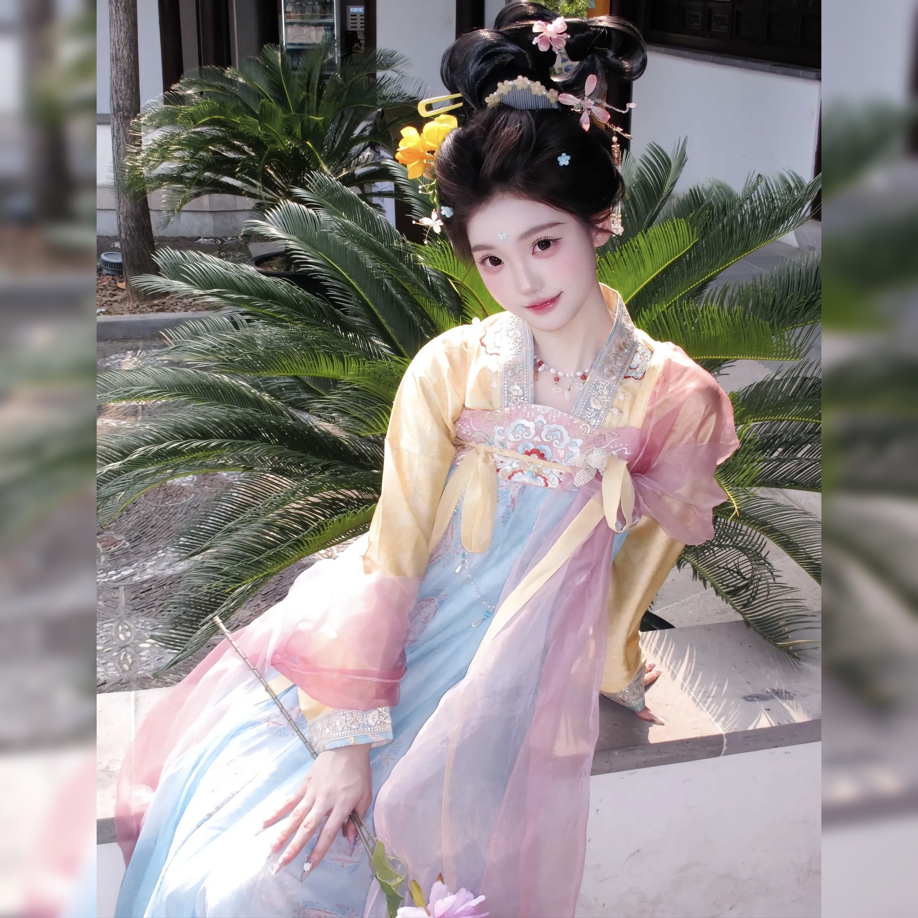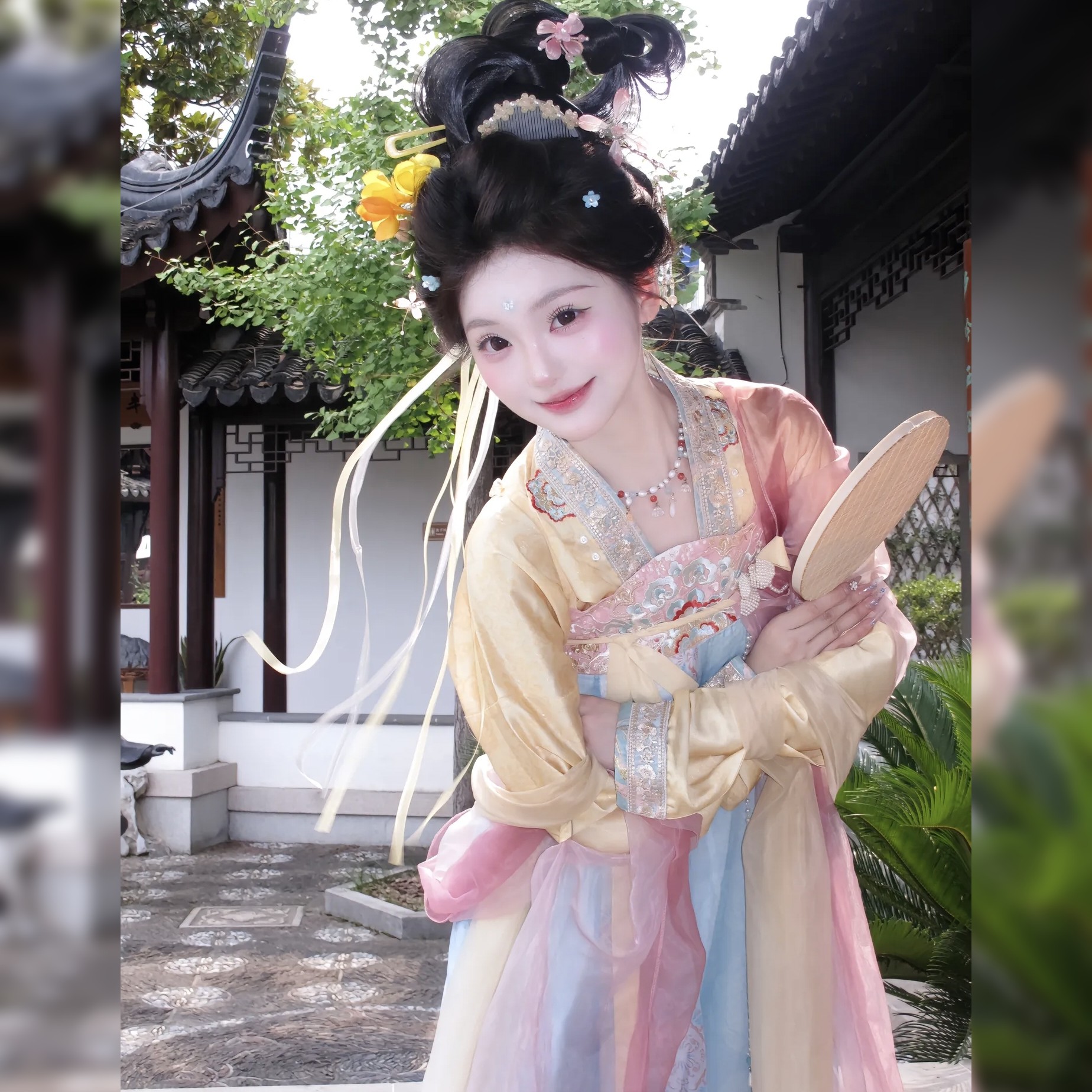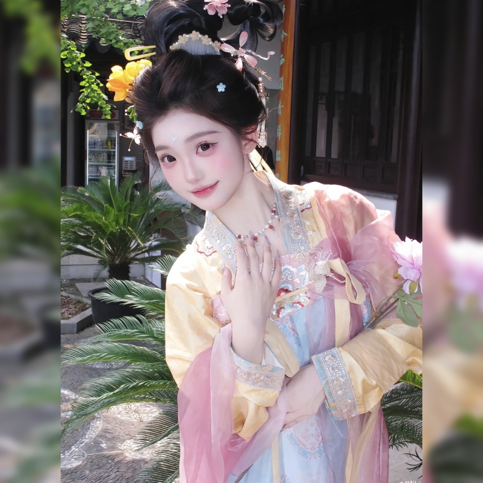 淘宝茶屿汉服,原创汉服女【紫苏糖】唐制一片式齐胸襦裙小唐风成人古装粉色套装